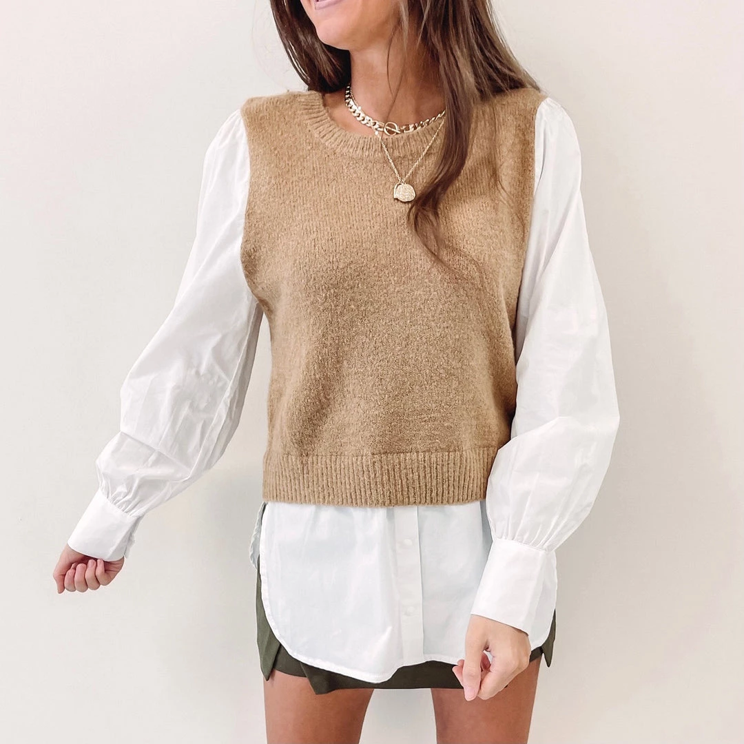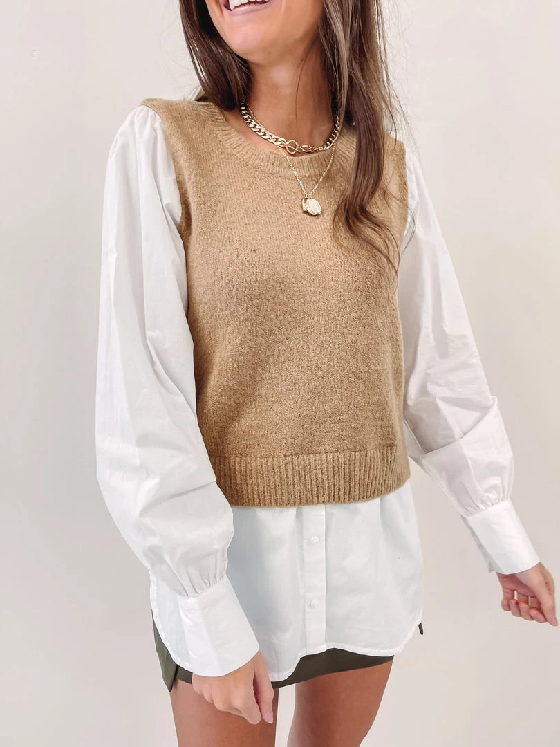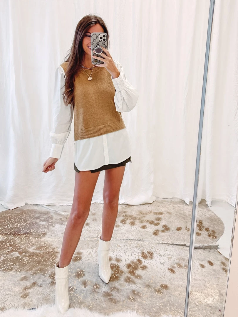 – Sweater vest is attached to the button down – makes the layered look so easy!