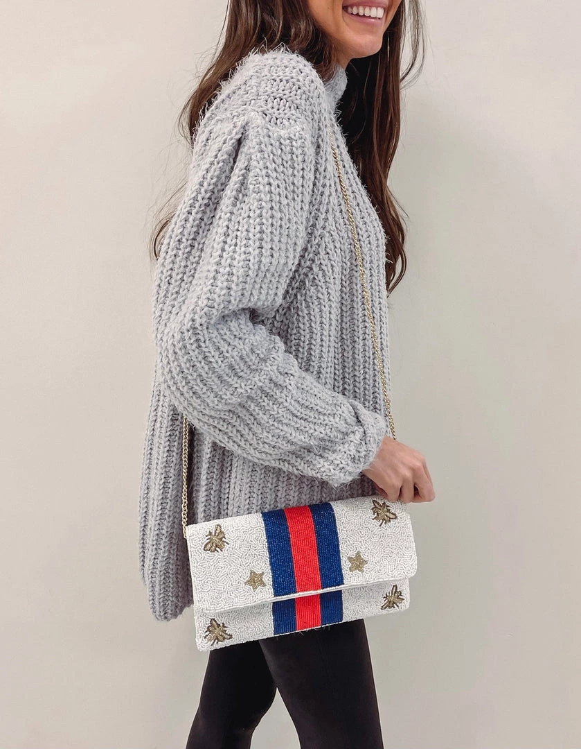 – 2 ft crossbody chain can be tucked in to use as a clutch