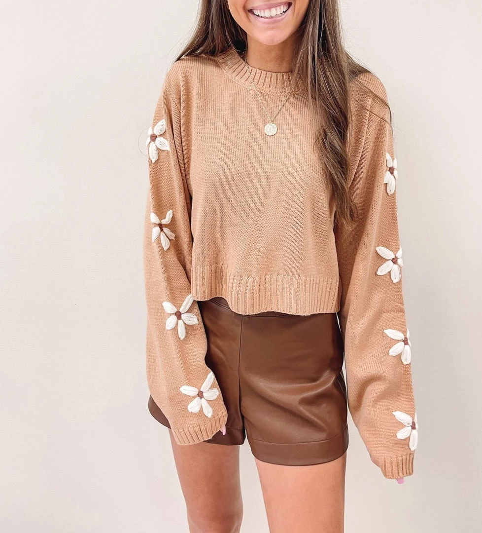 – Flower details along the sleeves
