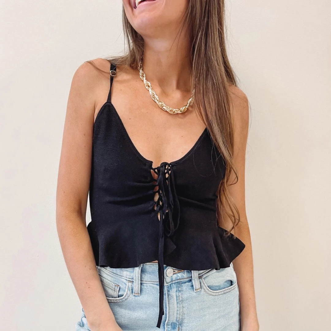 – Lace up ties in the front