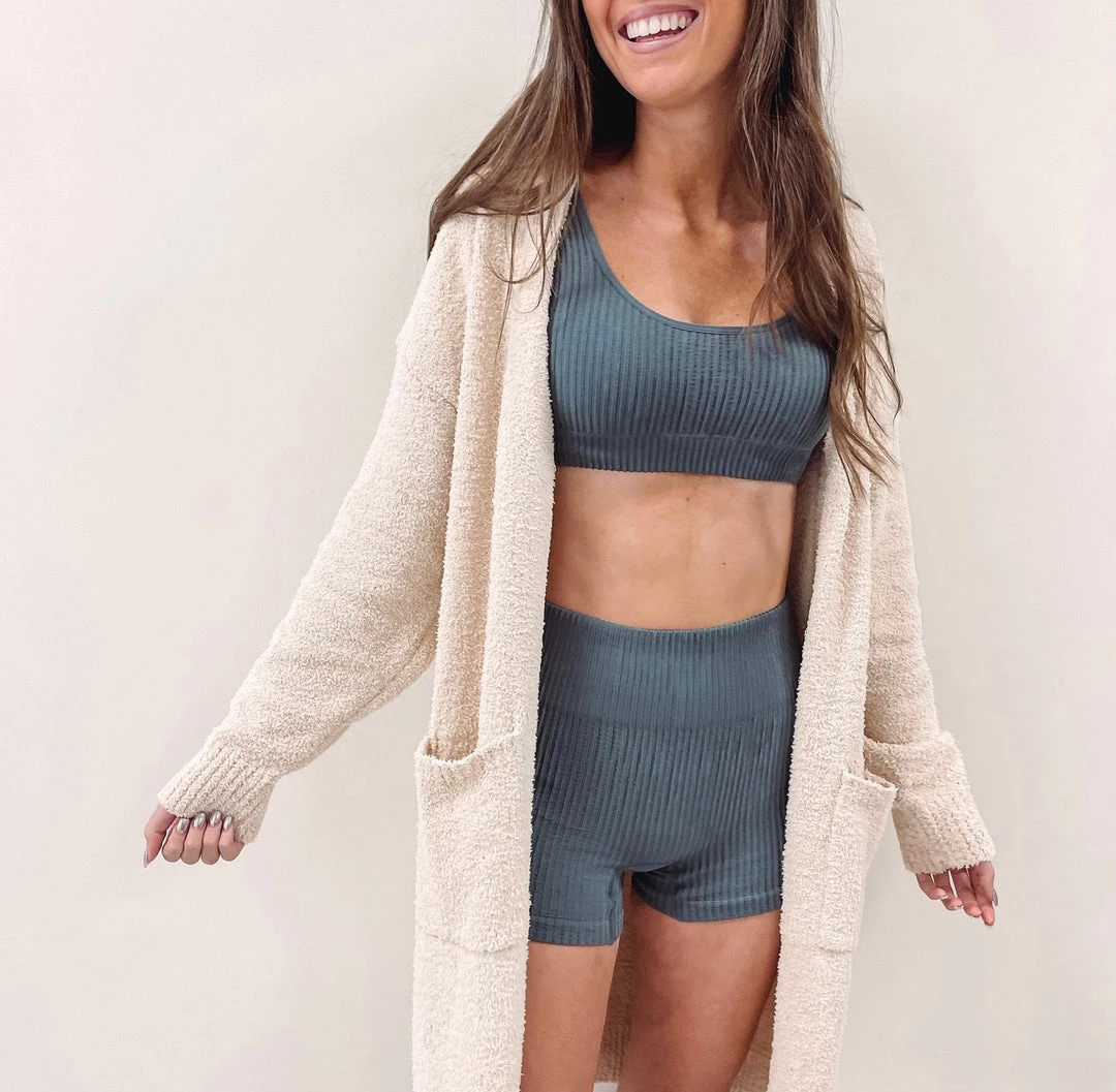 – Stretchy ribbed materialÂ