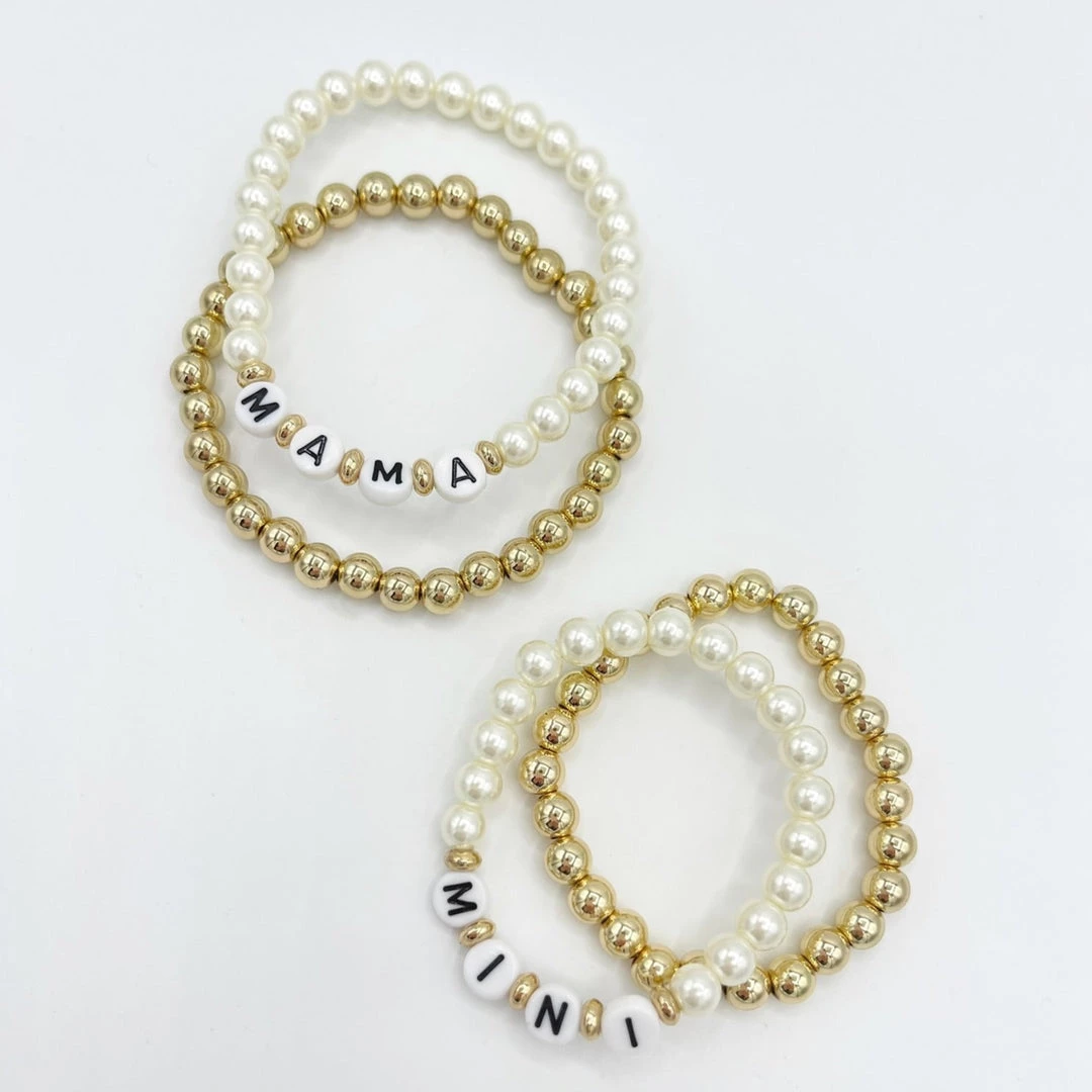 – Two bracelet sets sold together: Two Full Size Bracelets for the “Mama”set & two kid size bracelets for the “Mini Set”