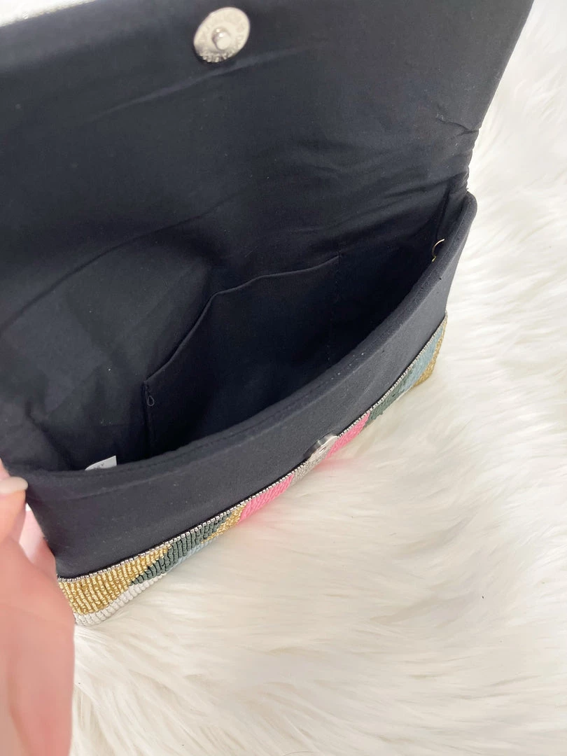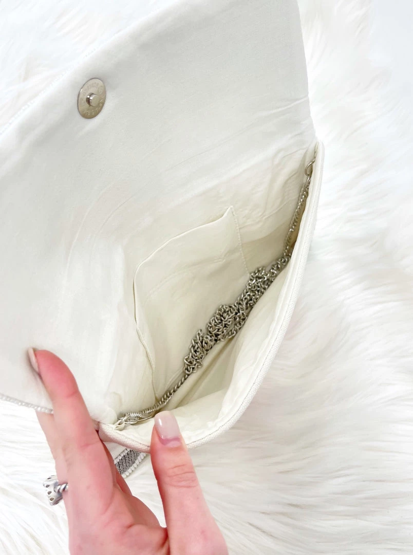 – 2 ft crossbody chain can be tucked in to use as a clutch