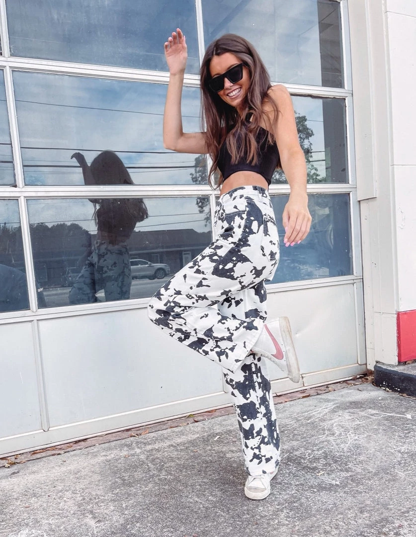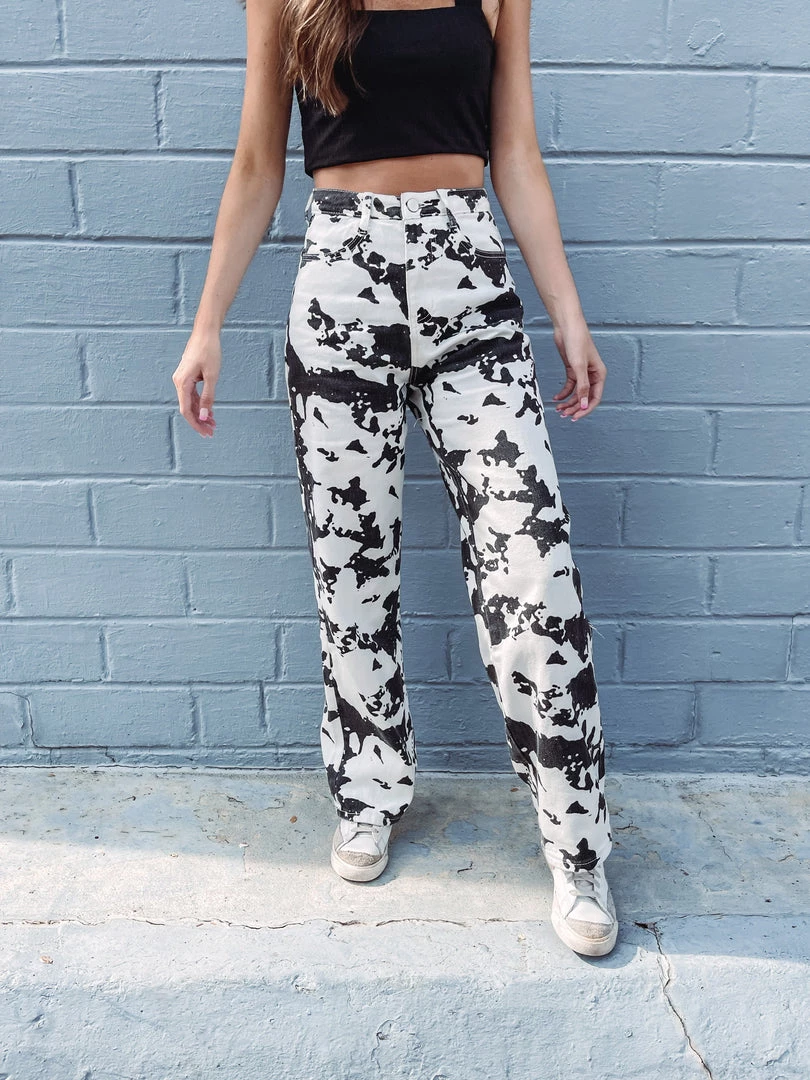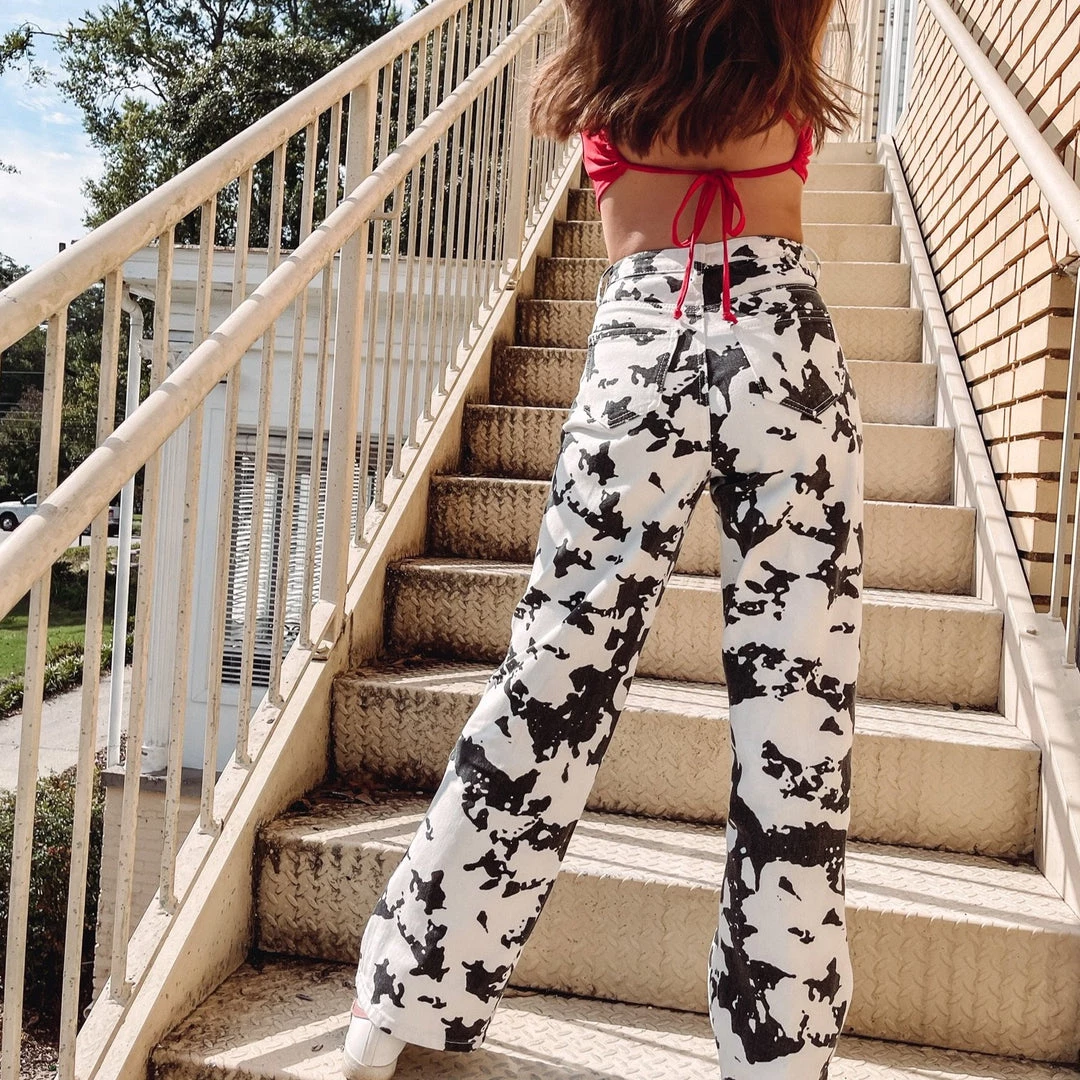 – Cowprint denim pantsÂ