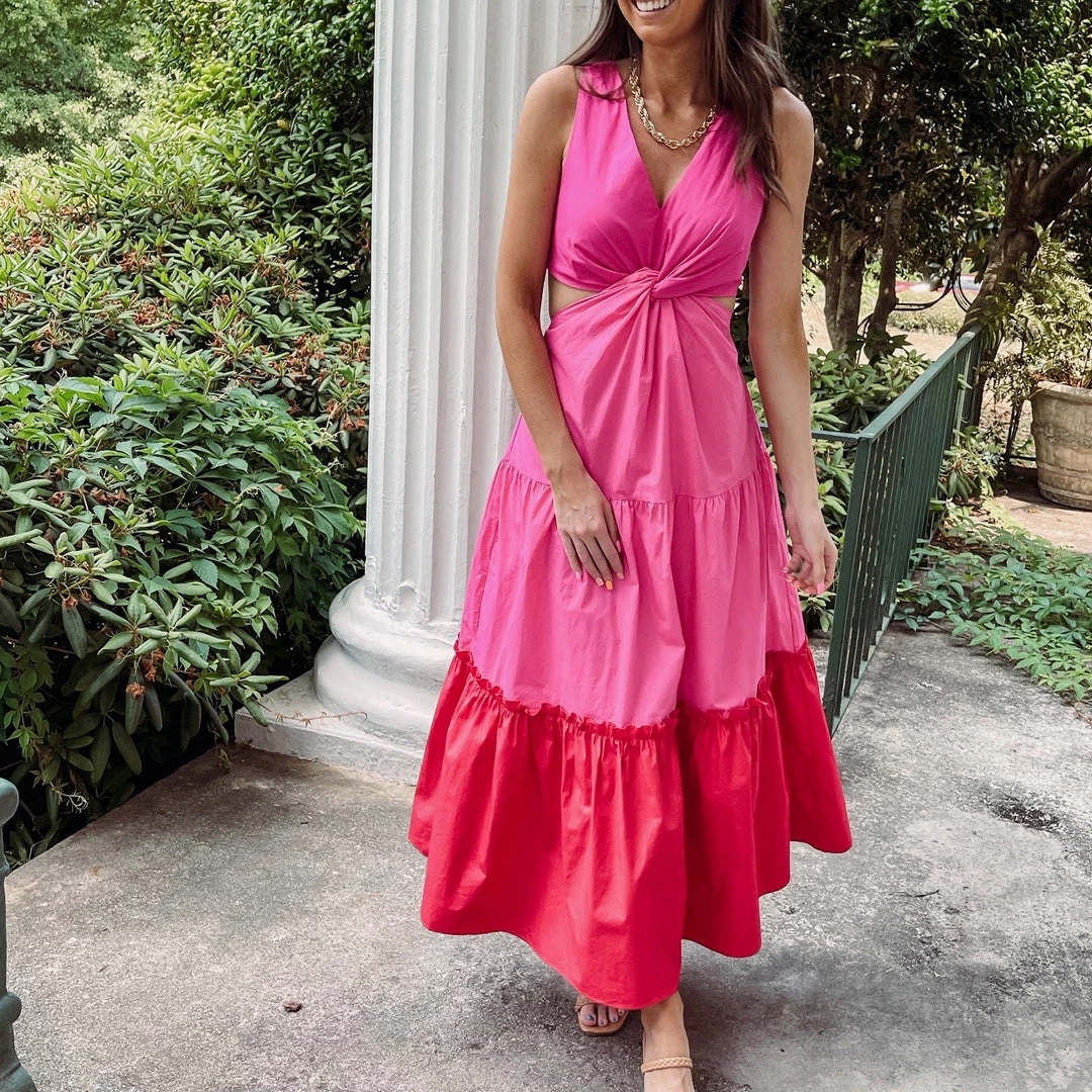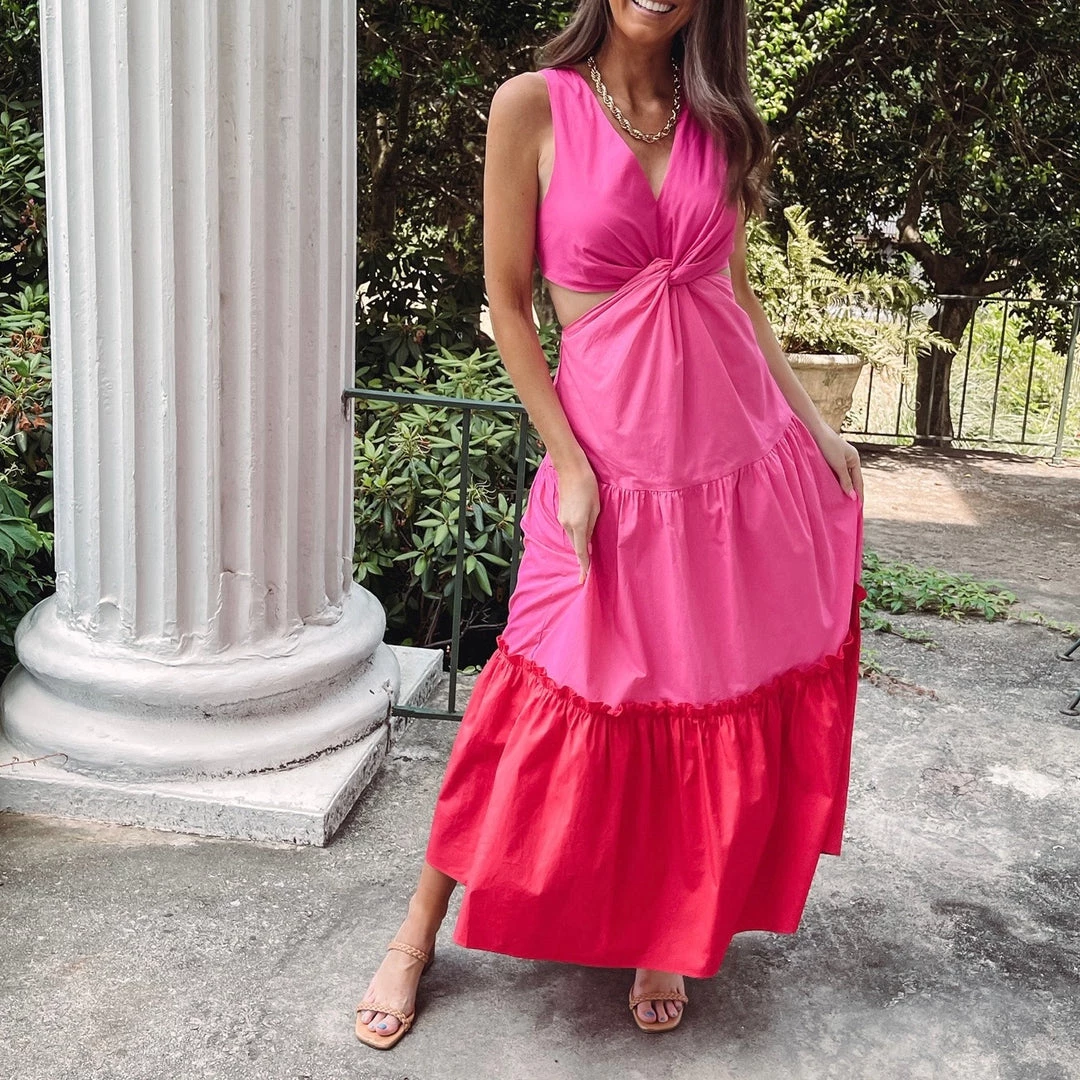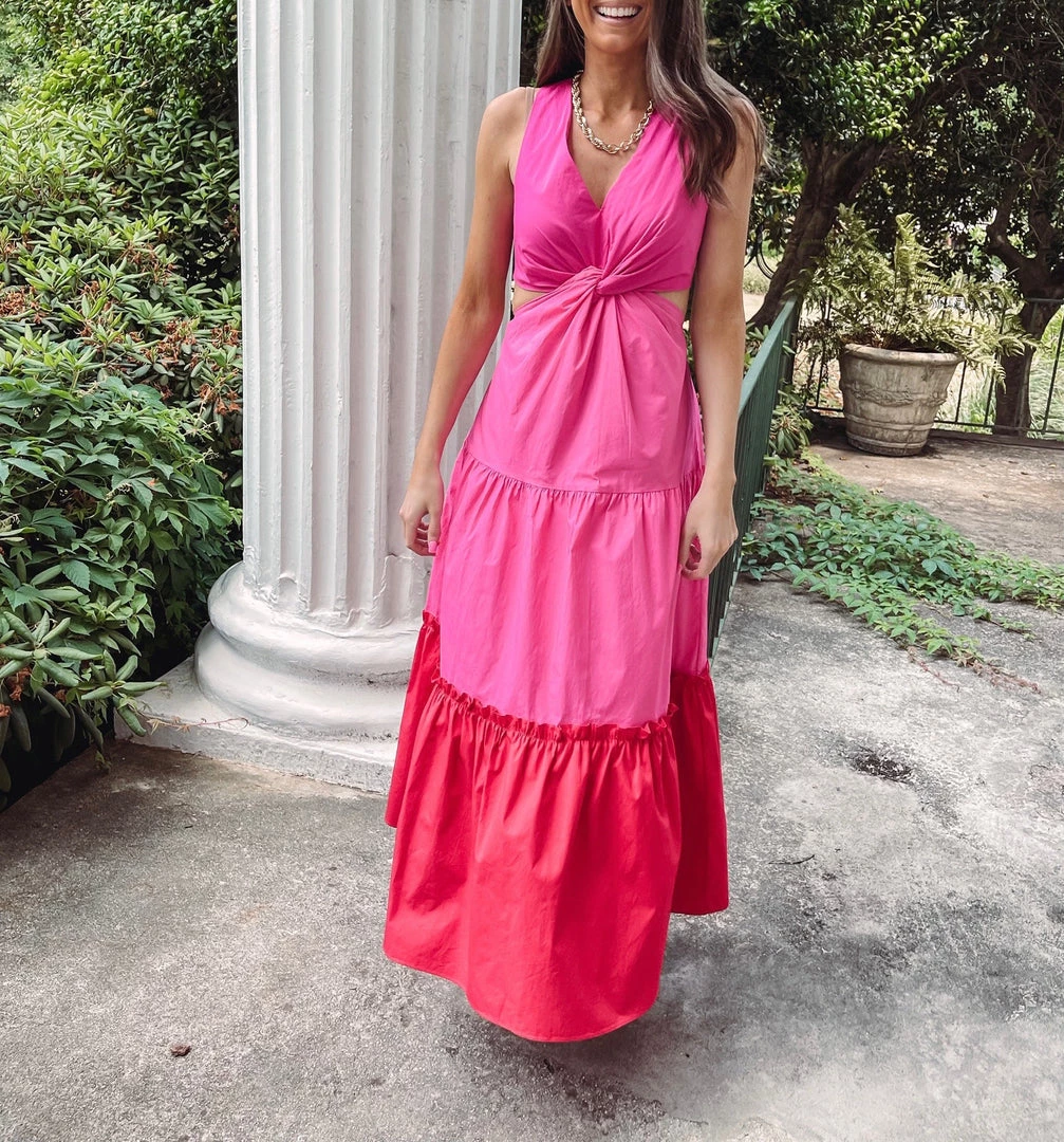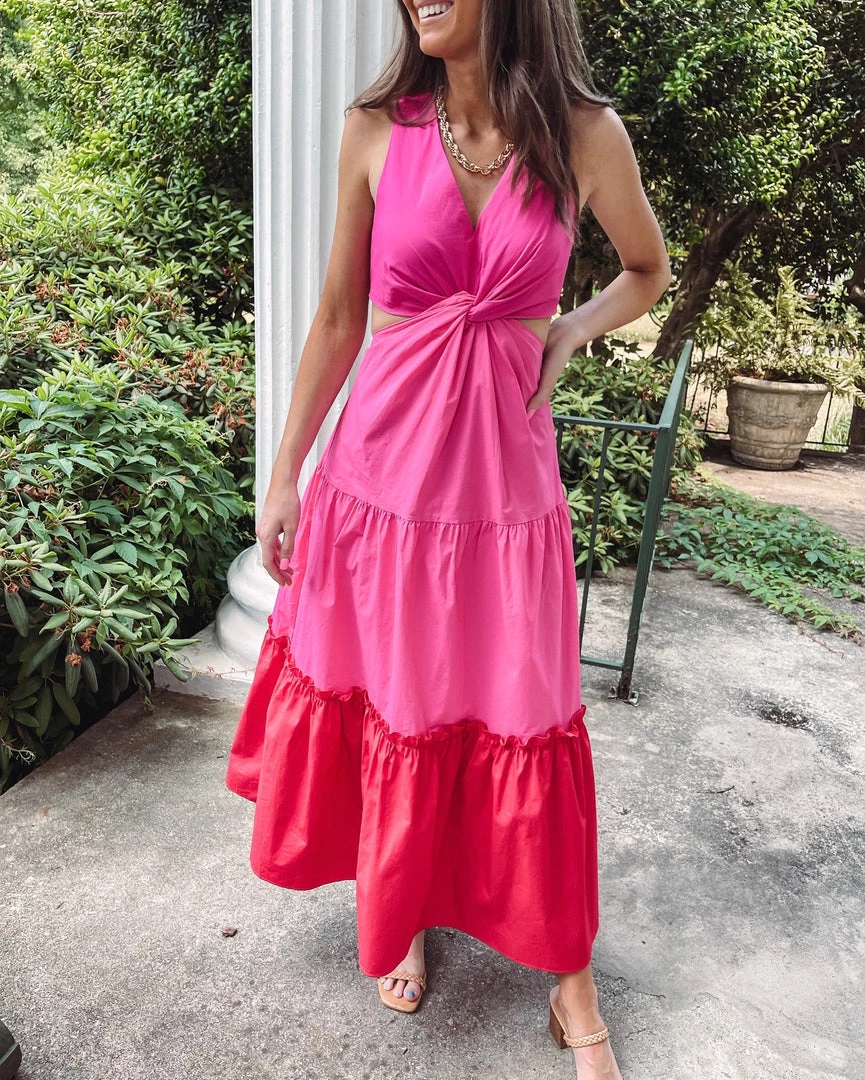 – Twist color block maxi dress