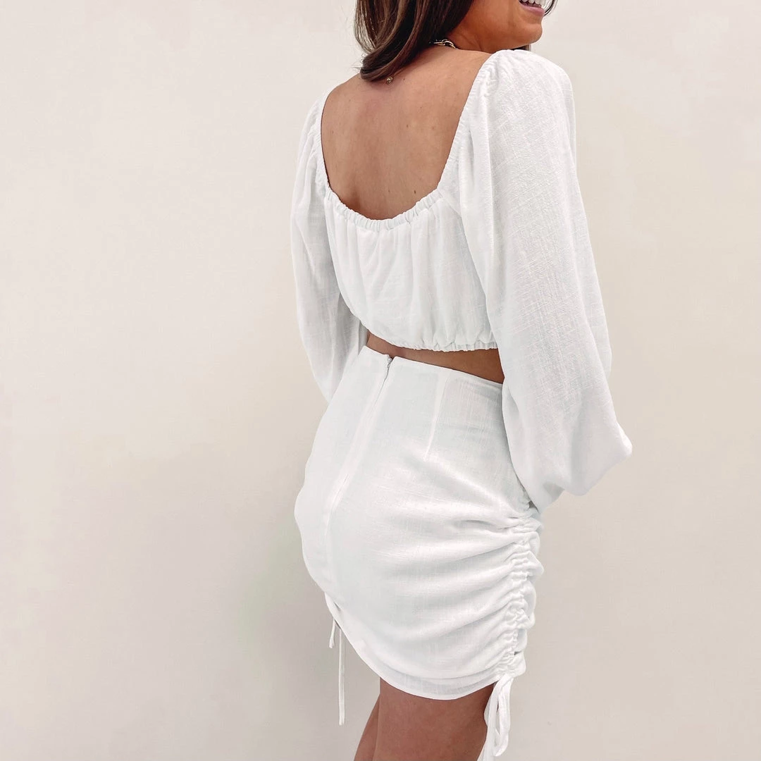 – Waist measurements for skirt: S – 26″, M – 28″, L – 30″