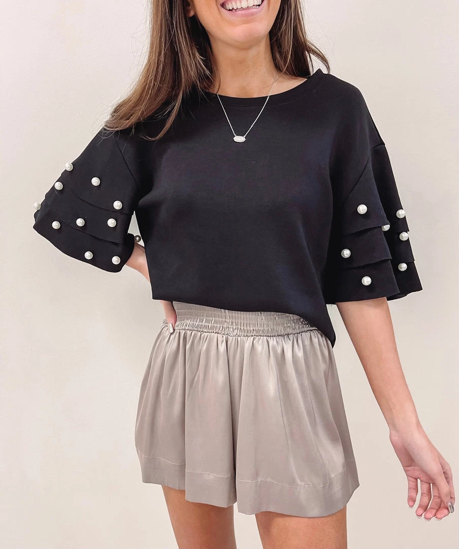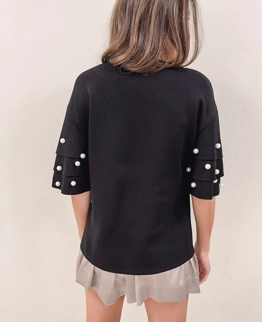 – Pearl details along the sleeves