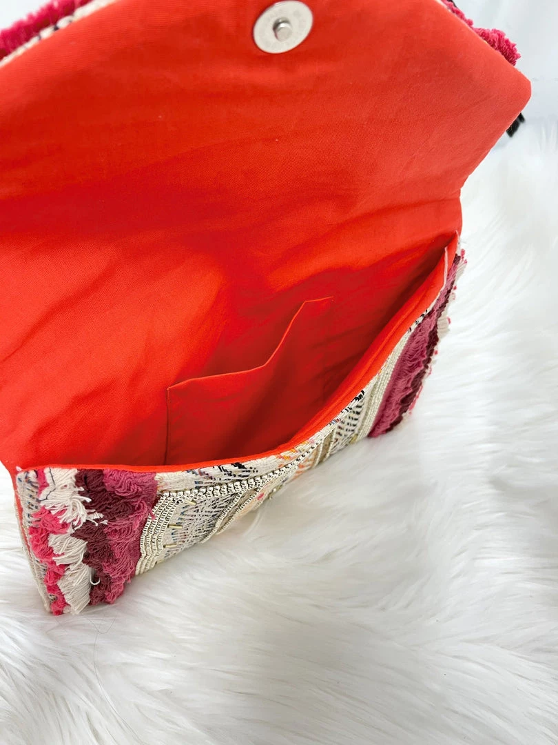 – 2 ft crossbody chain can be tucked in to use as a clutch