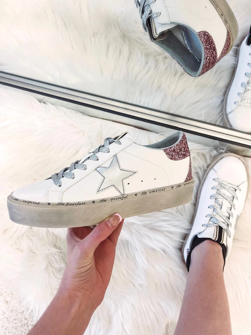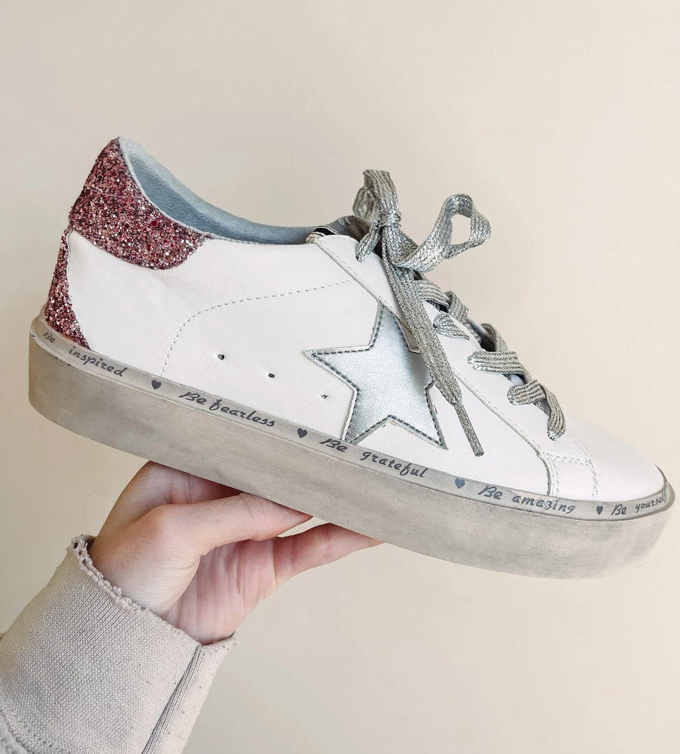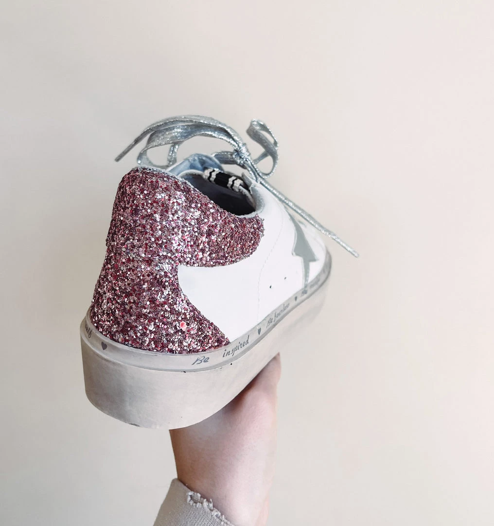 – Silver star + silver glitter laces