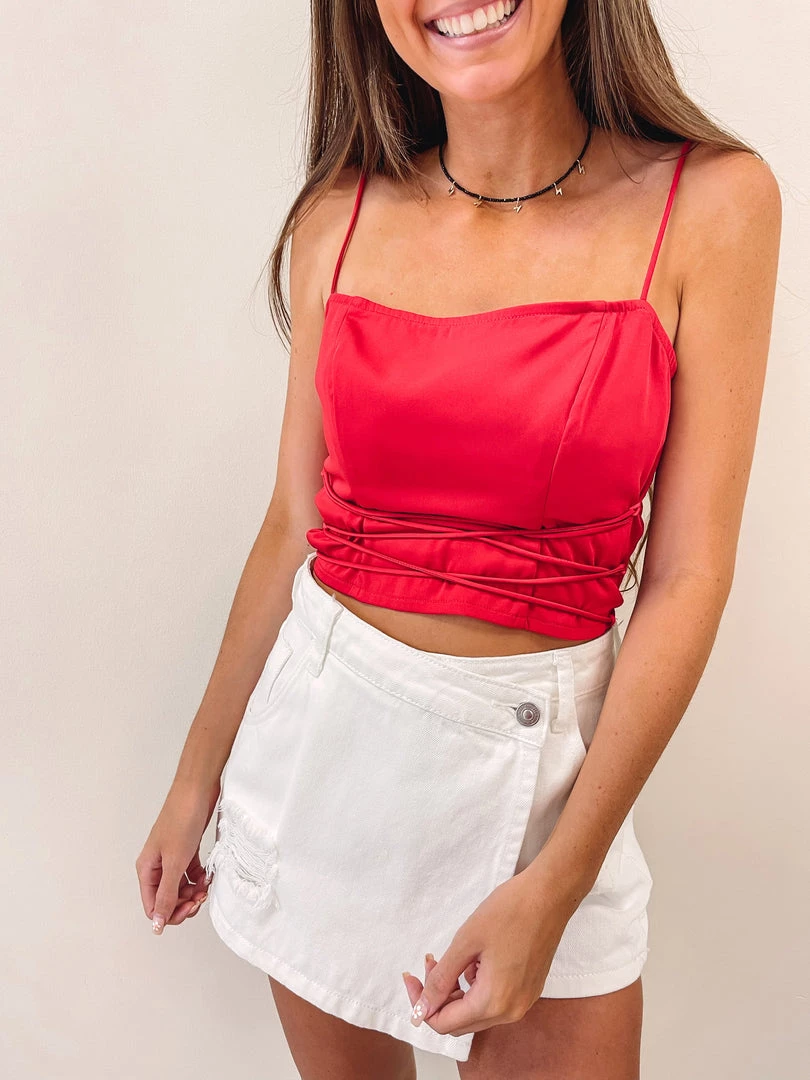 – Adjustable lace up details along the bottom