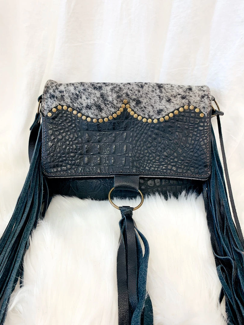 Indie Collection Leather Accessories Gold Cowhide Leather Crossbody