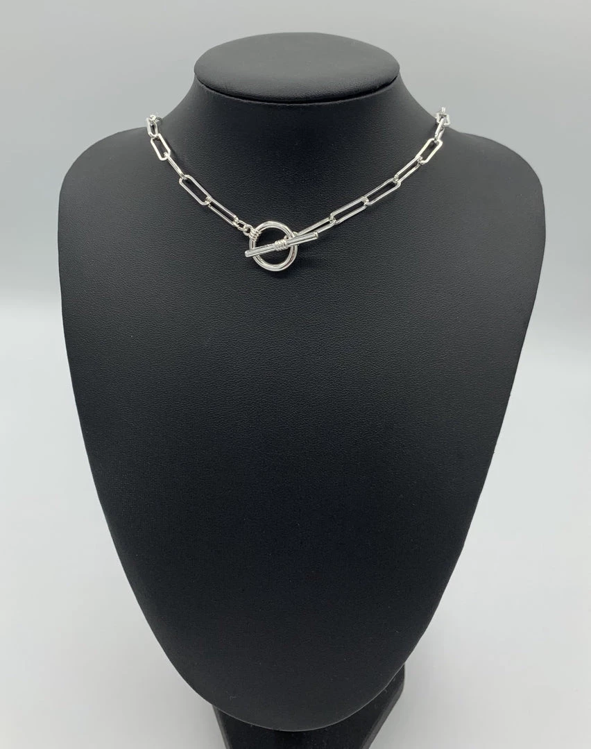 – Can be worn two ways. The T-Bar closure loop can be in the front or left in the back for a simple chain necklace look.