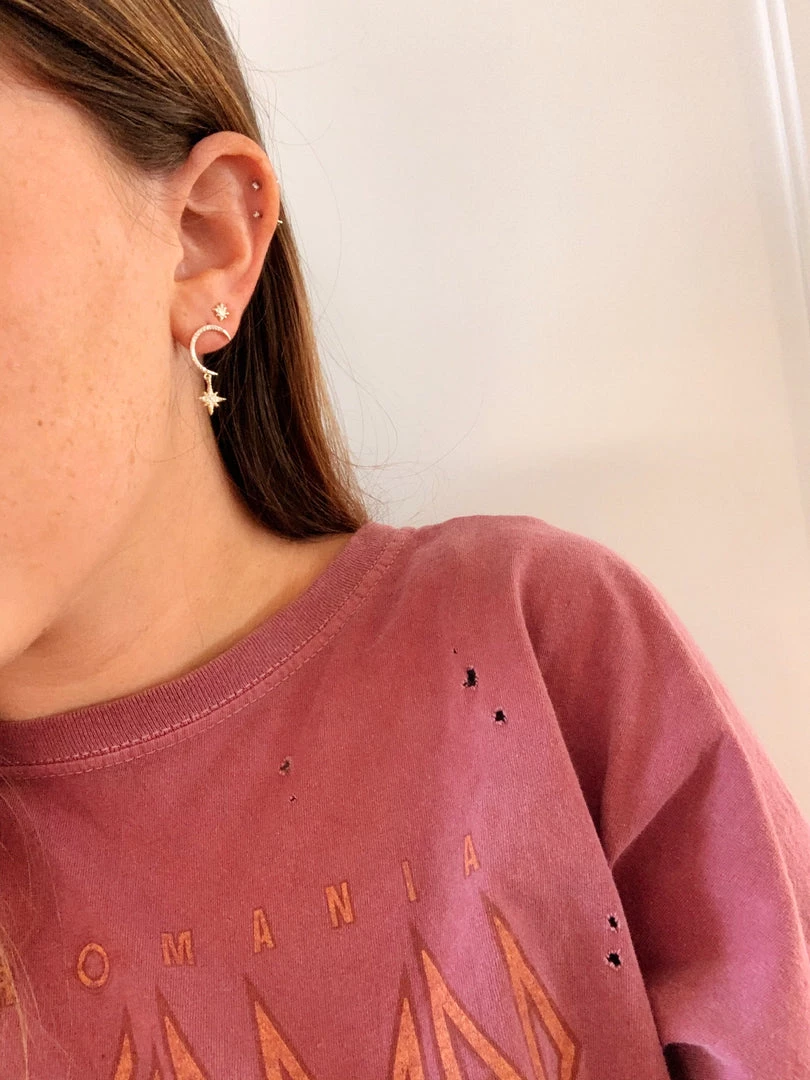 – Sterling silver dipped in a gold plating with cubic zirconia backing